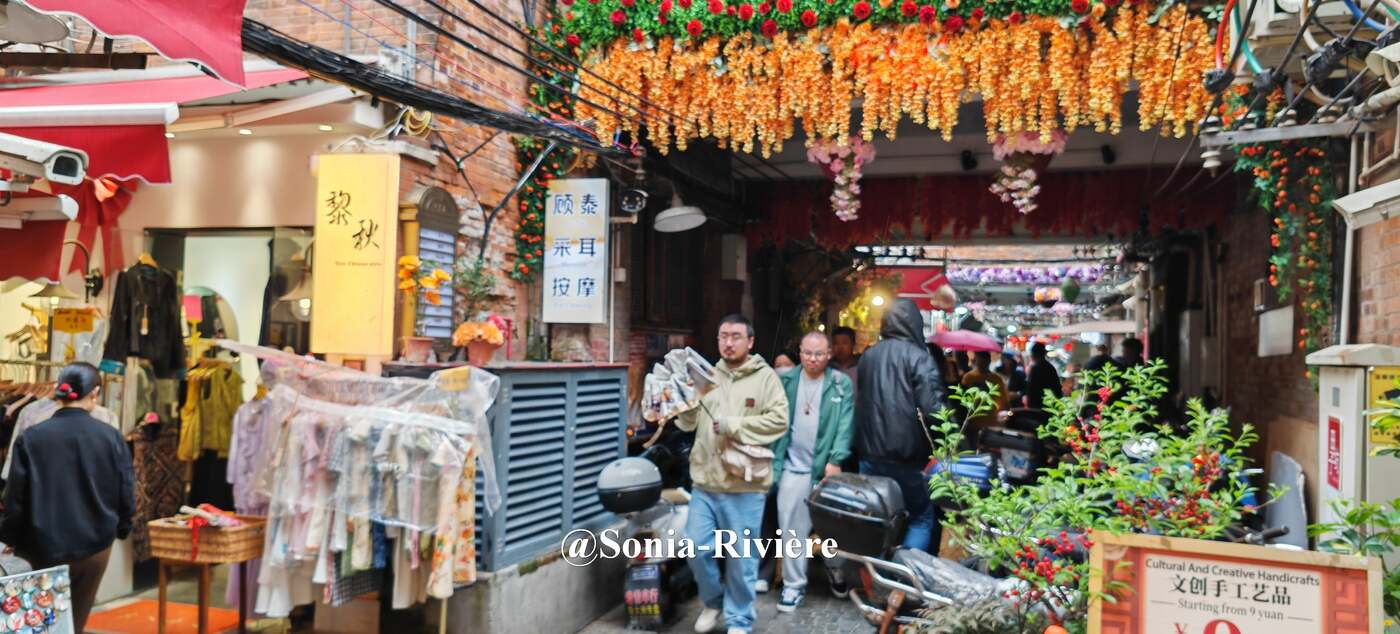Le charme de Tiánzǐfāng réside dans son dédale de passages étroits et de petites cours cachées. Chaque détour révèle un nouvel escalier ancien, une façade fleurie, une enseigne originale ou un coin plus paisible où s’attarder quelques instants.